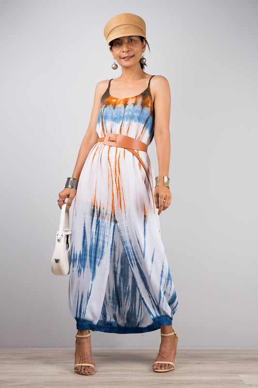 Tie dye jumpsuit by Nuichan.  Rainbow romper dress.