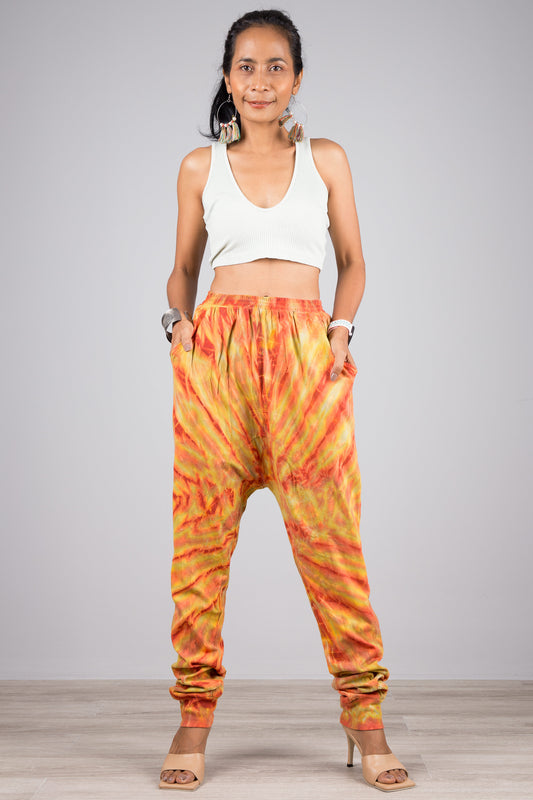 • Pants: Tie dye pants are all about bold expression, whether in wide-leg styles for a relaxed vibe or fitted joggers for a streetwear edge. They often feature vibrant, swirling patterns in colours like orange and blue, making them a standout piece for casual outings or beach days.
