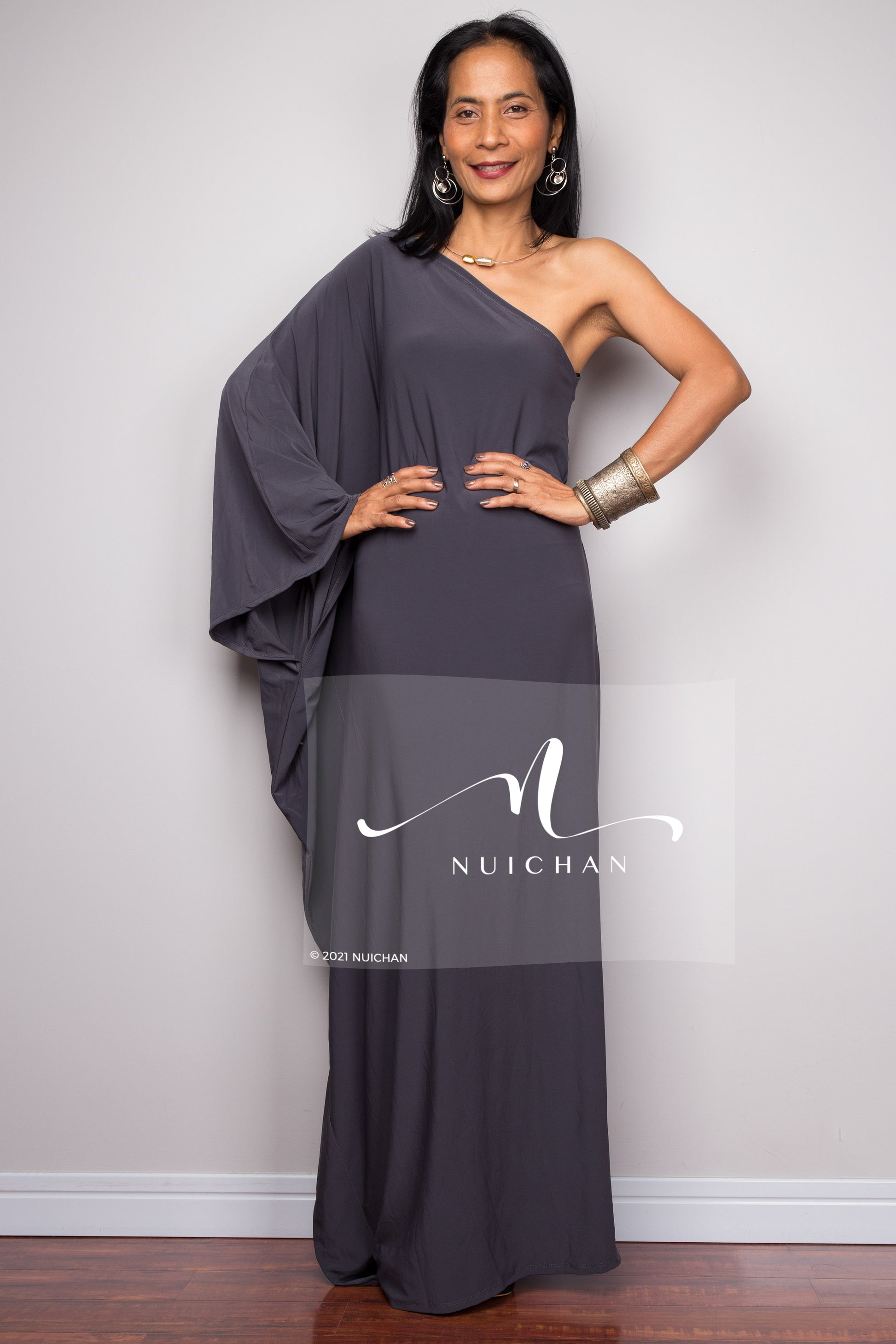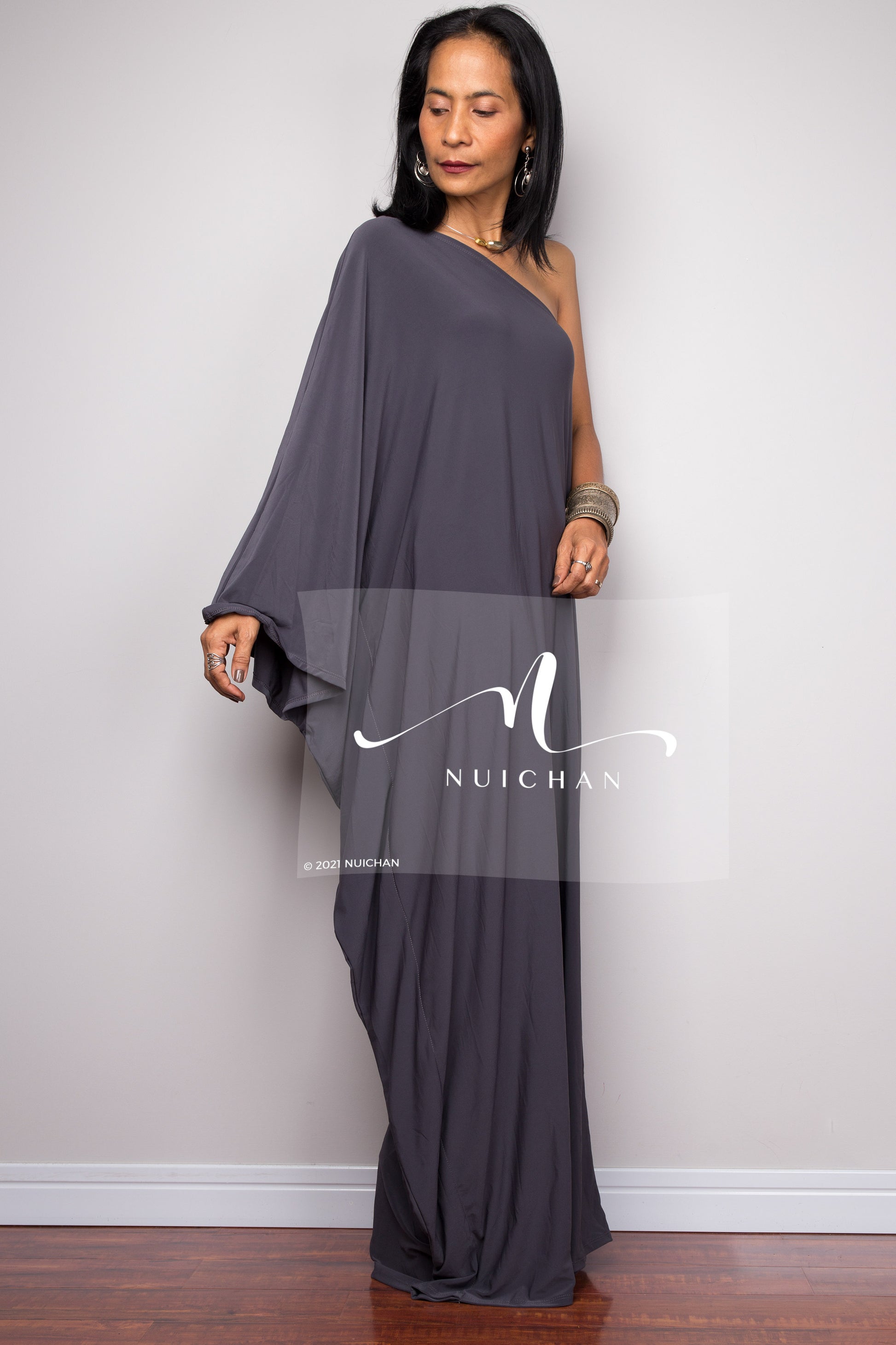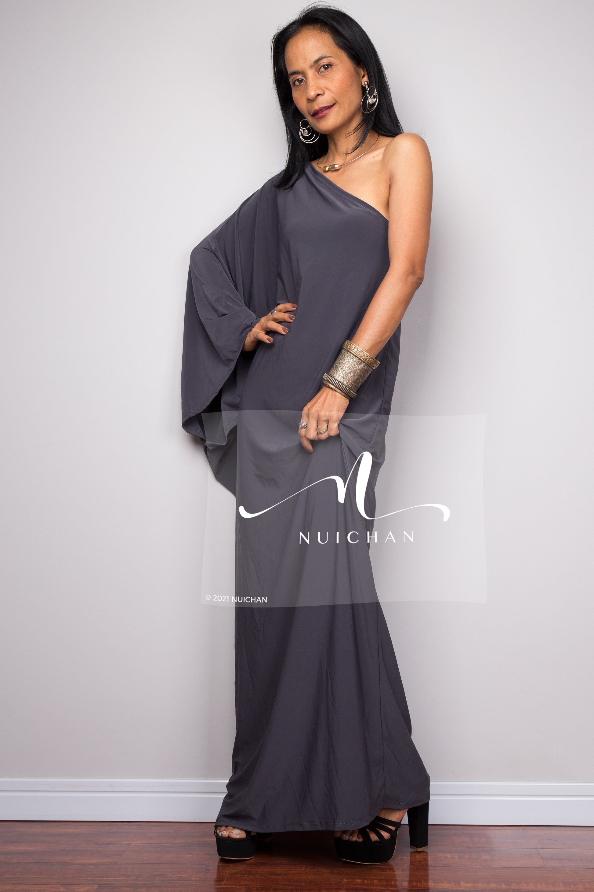 Elevate your style with our stunning gray boho chic one shoulder kaftan.