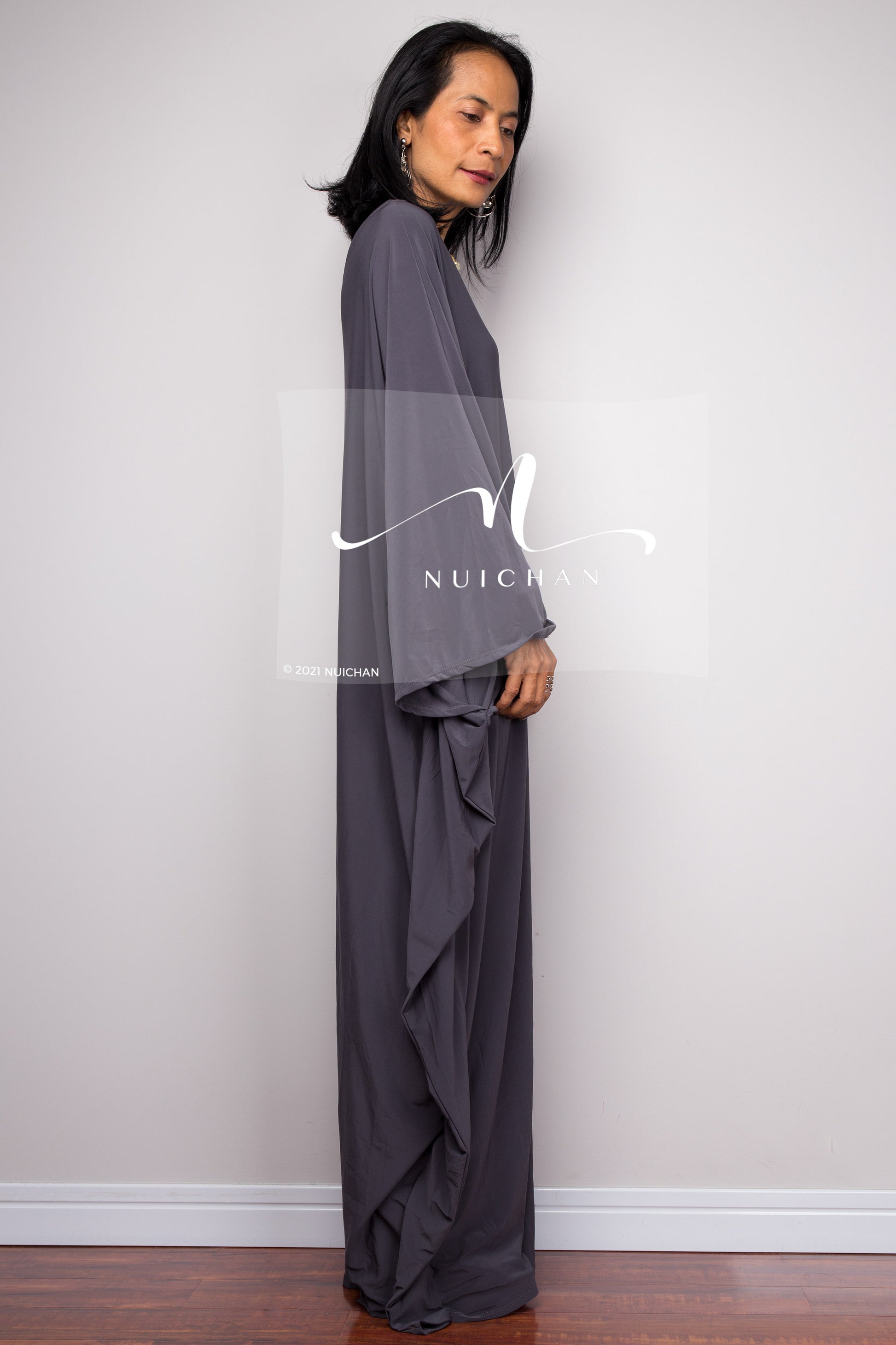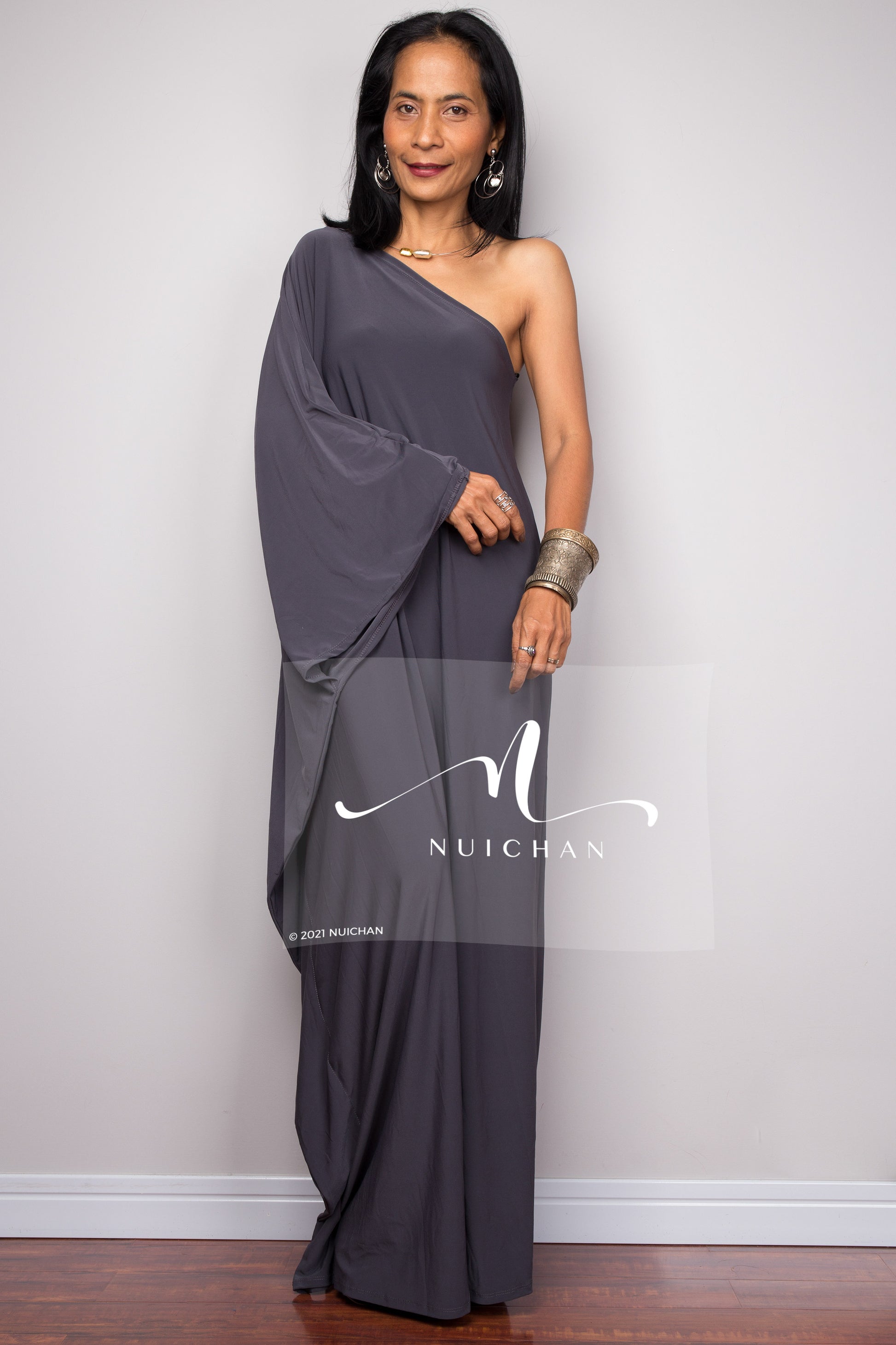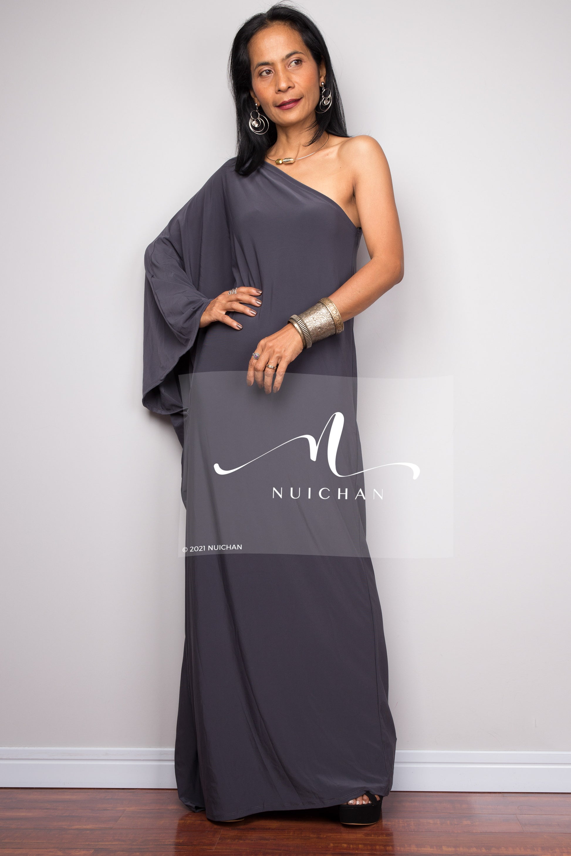Elevate your style with our stunning gray boho chic one shoulder kaftan.