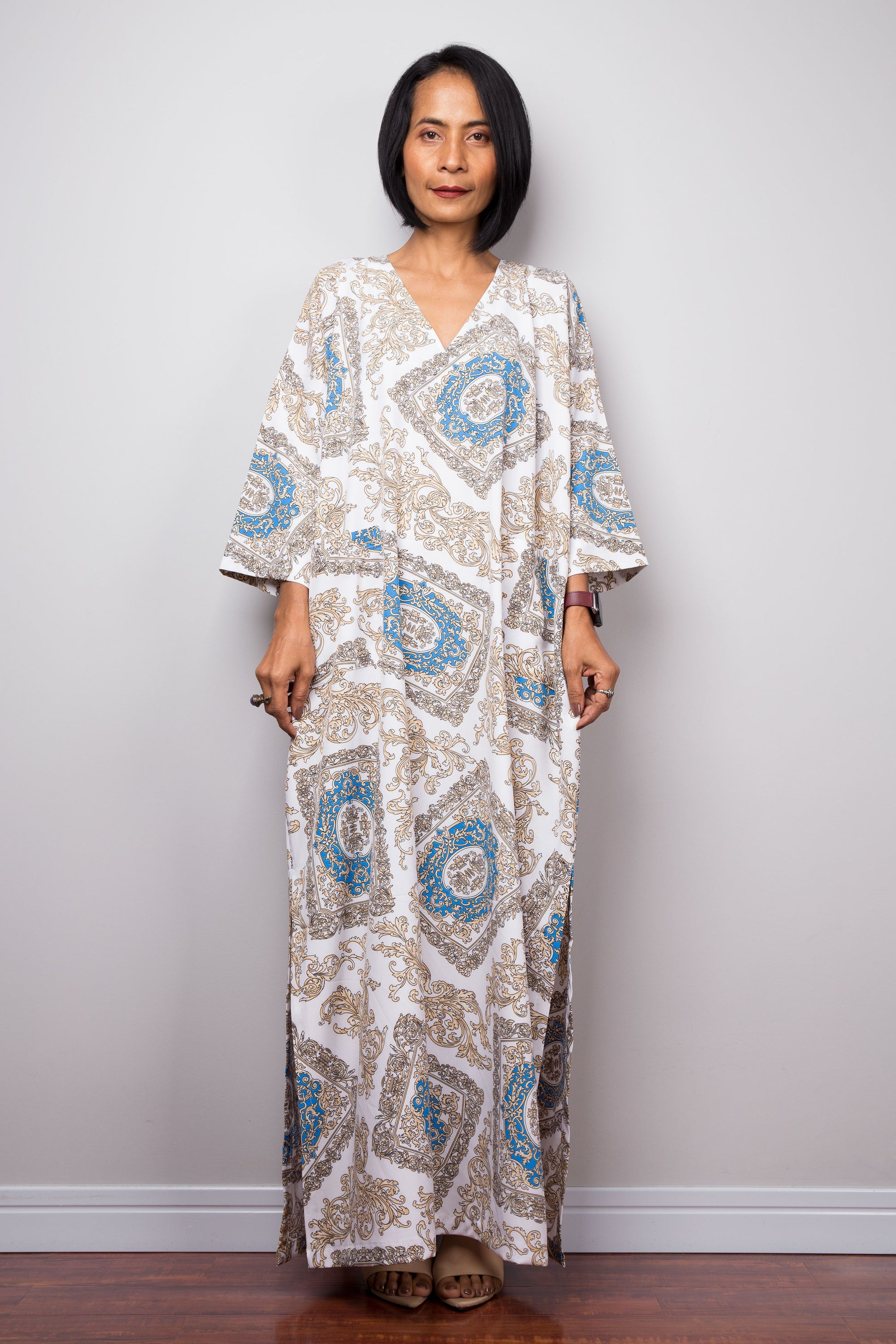 This summer kaftan dress is made from a smooth, soft polyester which is a joy to wear. It is light, breathable and flows elegantly around your body.