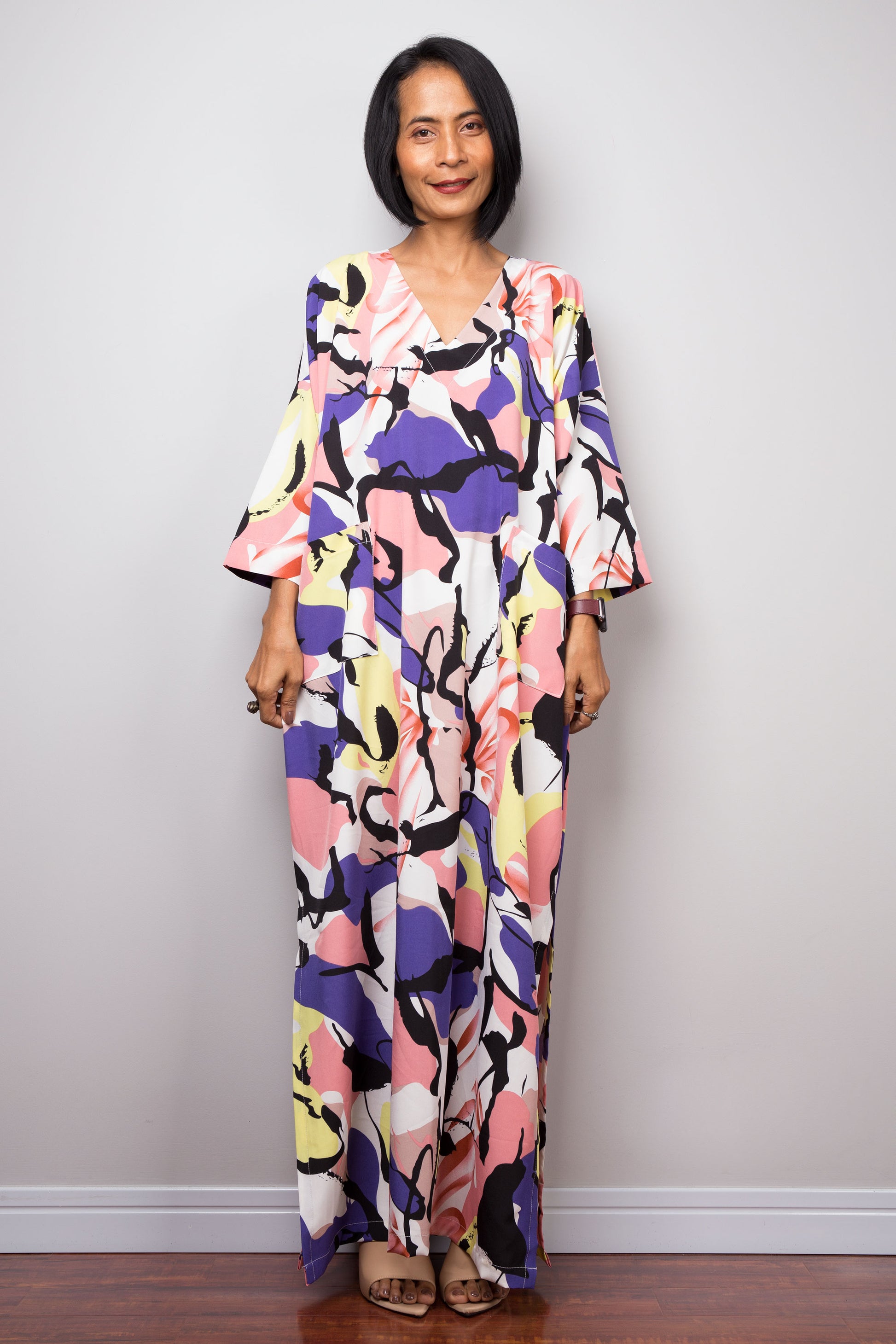 This purple kaftan dress is made from a smooth, soft polyester which is a joy to wear. It is light, breathable and flows elegantly around your body.